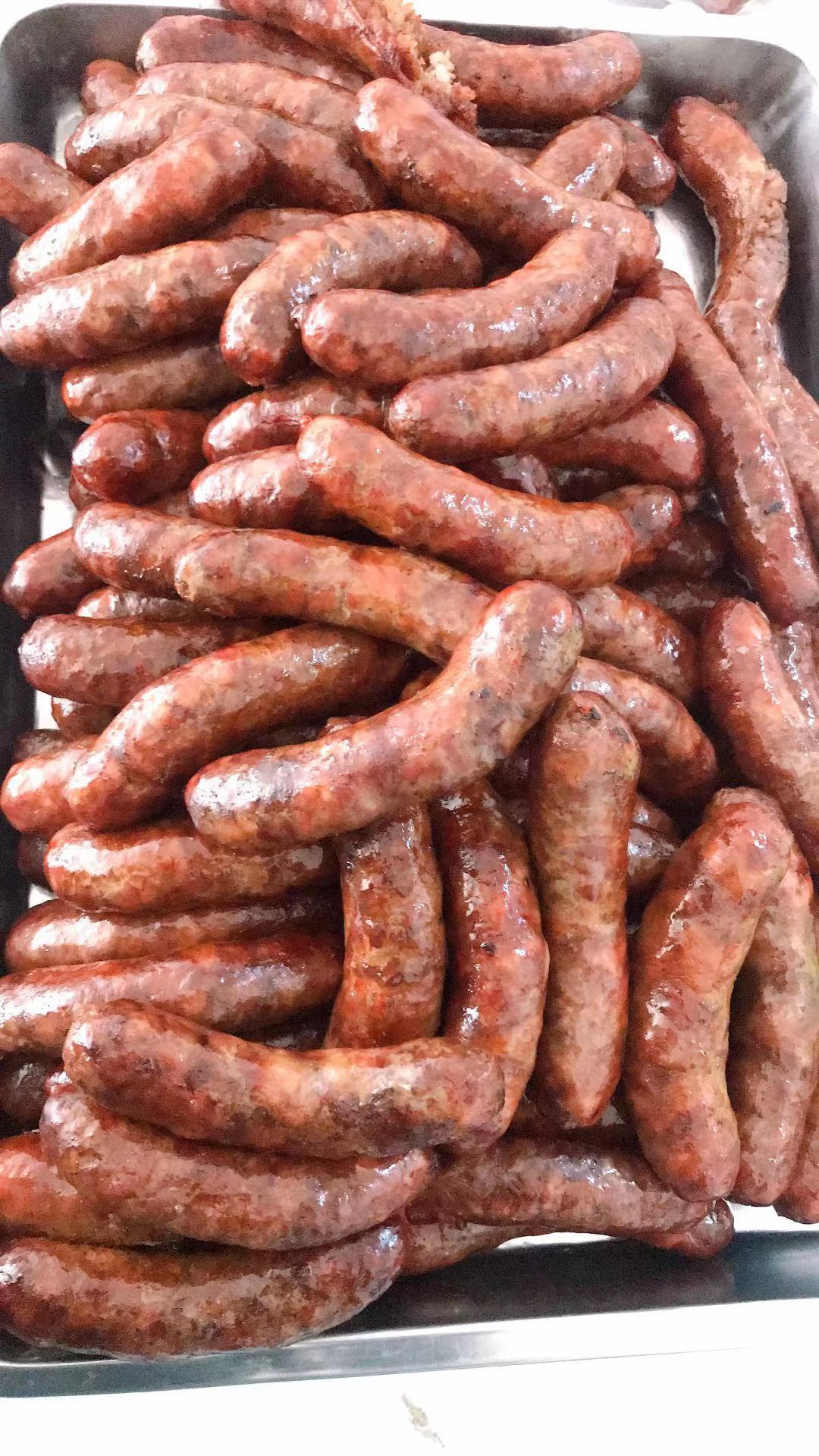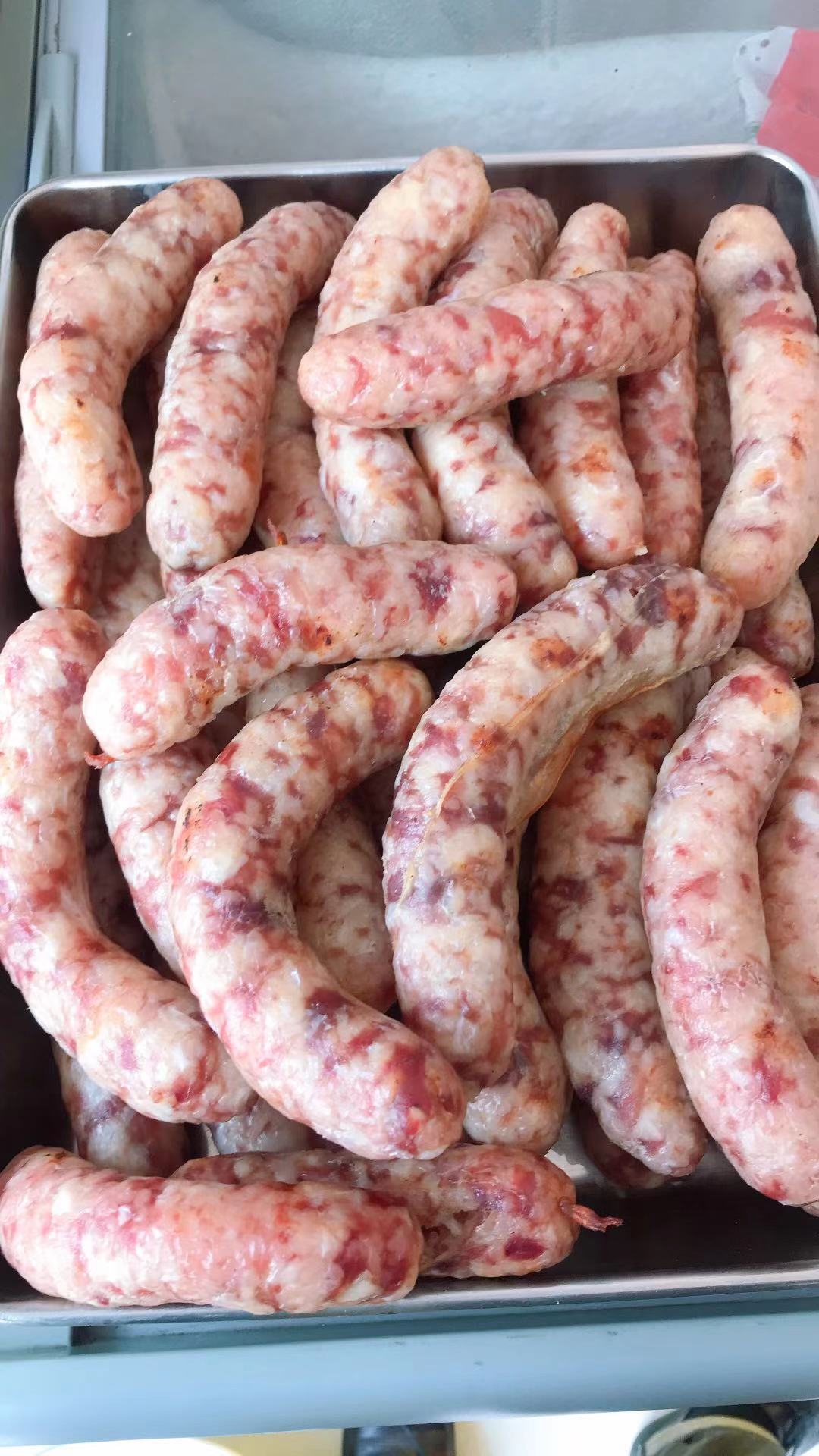 下图是自制的烤肠和糯米肠,白色的是糯米不是大白肉哦!