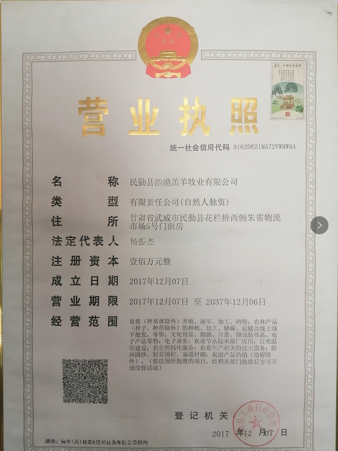 去购物车甘肃民勤浩漠羔羊牧业有限公司是一家独资民营企业,我公司经营模式是:实体店+互联网、公司+农民专业合作社、公司+农民,公司专门设立浩漠羔羊体验店,随时欢迎客商品尝、可选购10多种羔羊产品,公司同民勤昌宁、南湖镇等500多养羊农户签订长期合作协议。使得农民有收入,公司有效益,我们共同谋发展共奔富裕路。